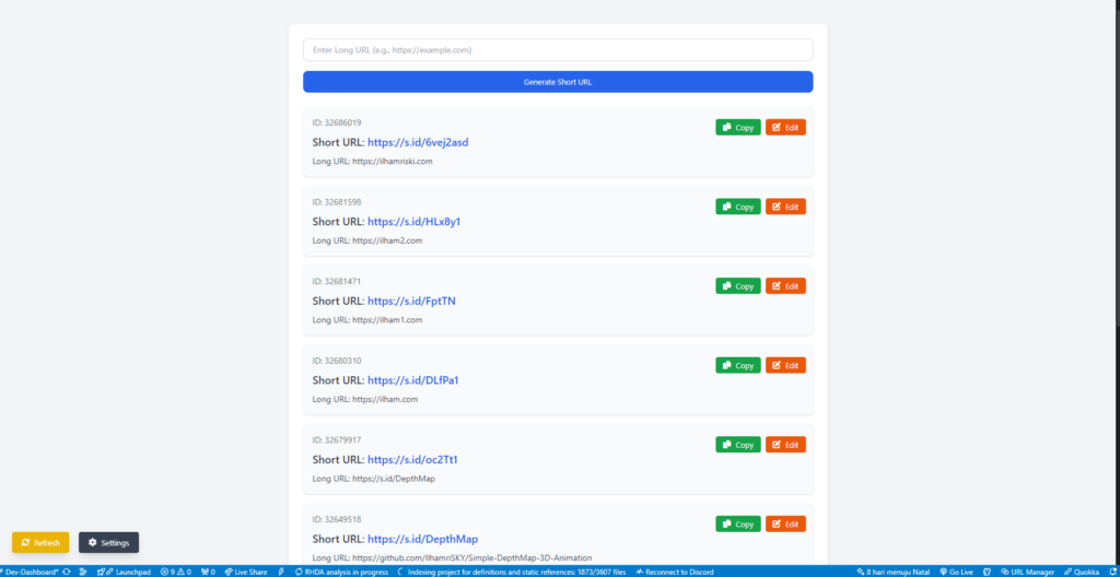 This SID URL Shortener extension for Visual Studio Code allows you to generate short URLs using the S.ID API. With this extension, you can quickly create short links and manage them directly from within VS Code. The extension requires authentication through the S.ID API, and you must provide your X-Auth-Id and X-Auth-Key to interact with the API.