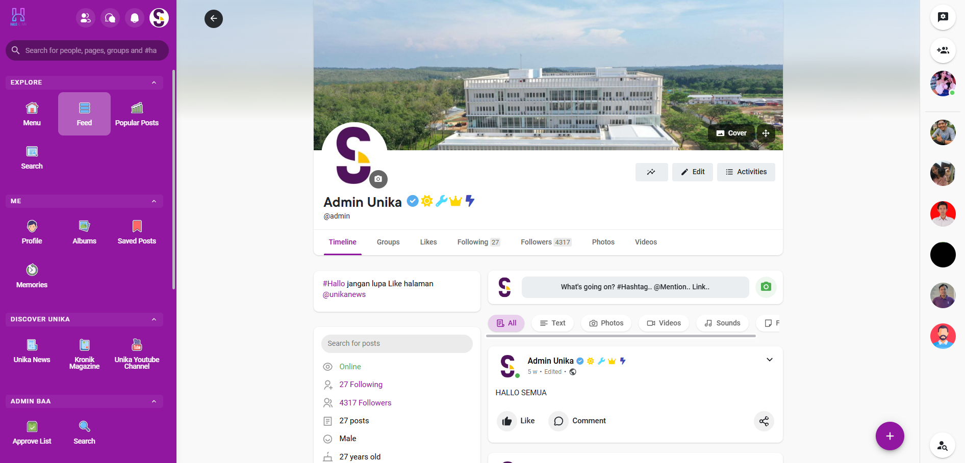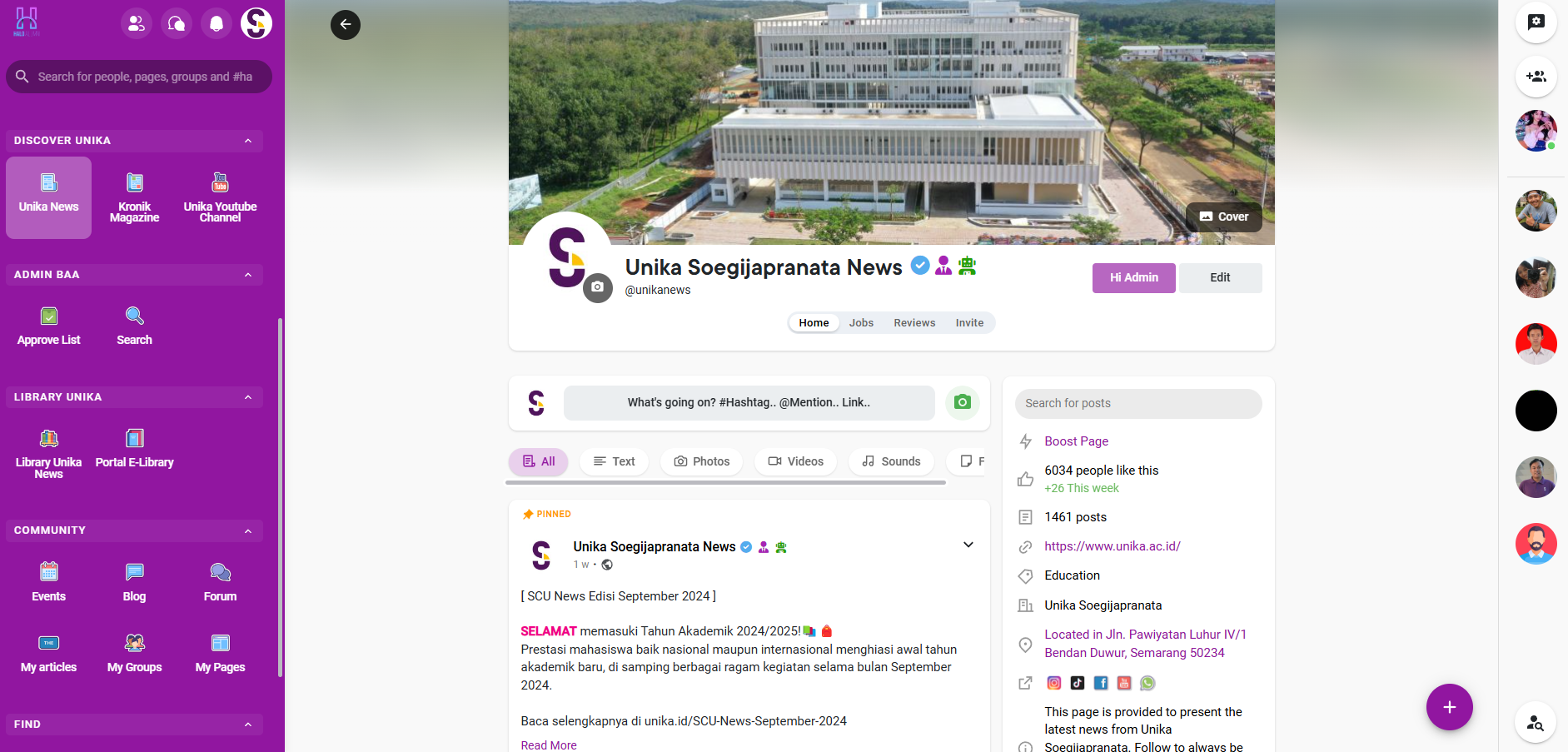 HANI (Halo Alumni) is a social media platform specifically designed for alumni of Soegijapranata Catholic University. This platform allows alumni to stay connected, share job vacancies, and access important campus updates. HANI offers features tailored exclusively for alumni, facilitating engagement and networking within the university community, much like popular social media platforms but with a focus on alumni relations.